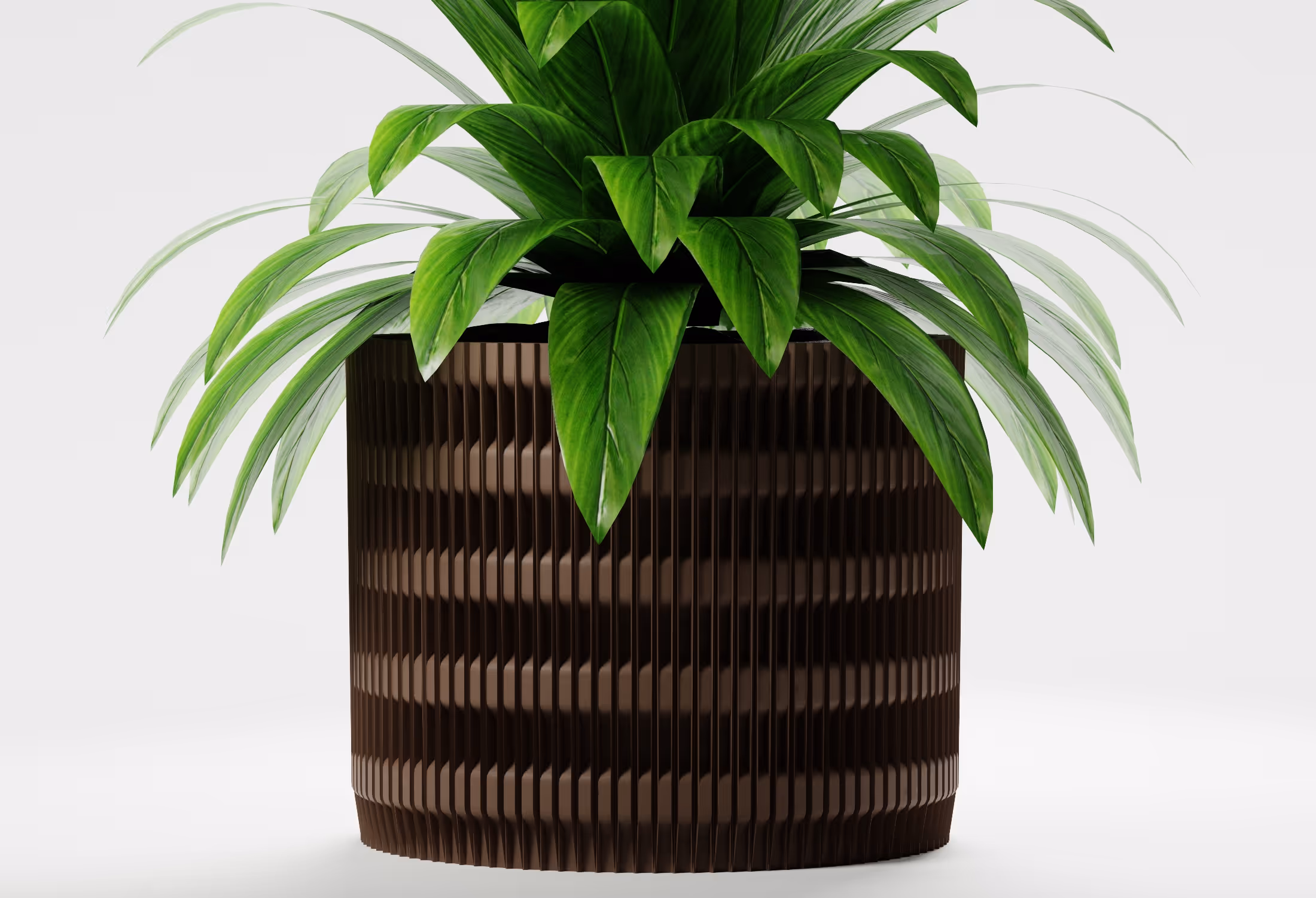 Furaha rests in a grounded, cylindrical form softened by a rhythmic pattern of ribs. Its structure feels steady and spacious, making it a natural fit for plants that gather their foliage low and wide or those that rise gently while keeping a balanced, contained shape.