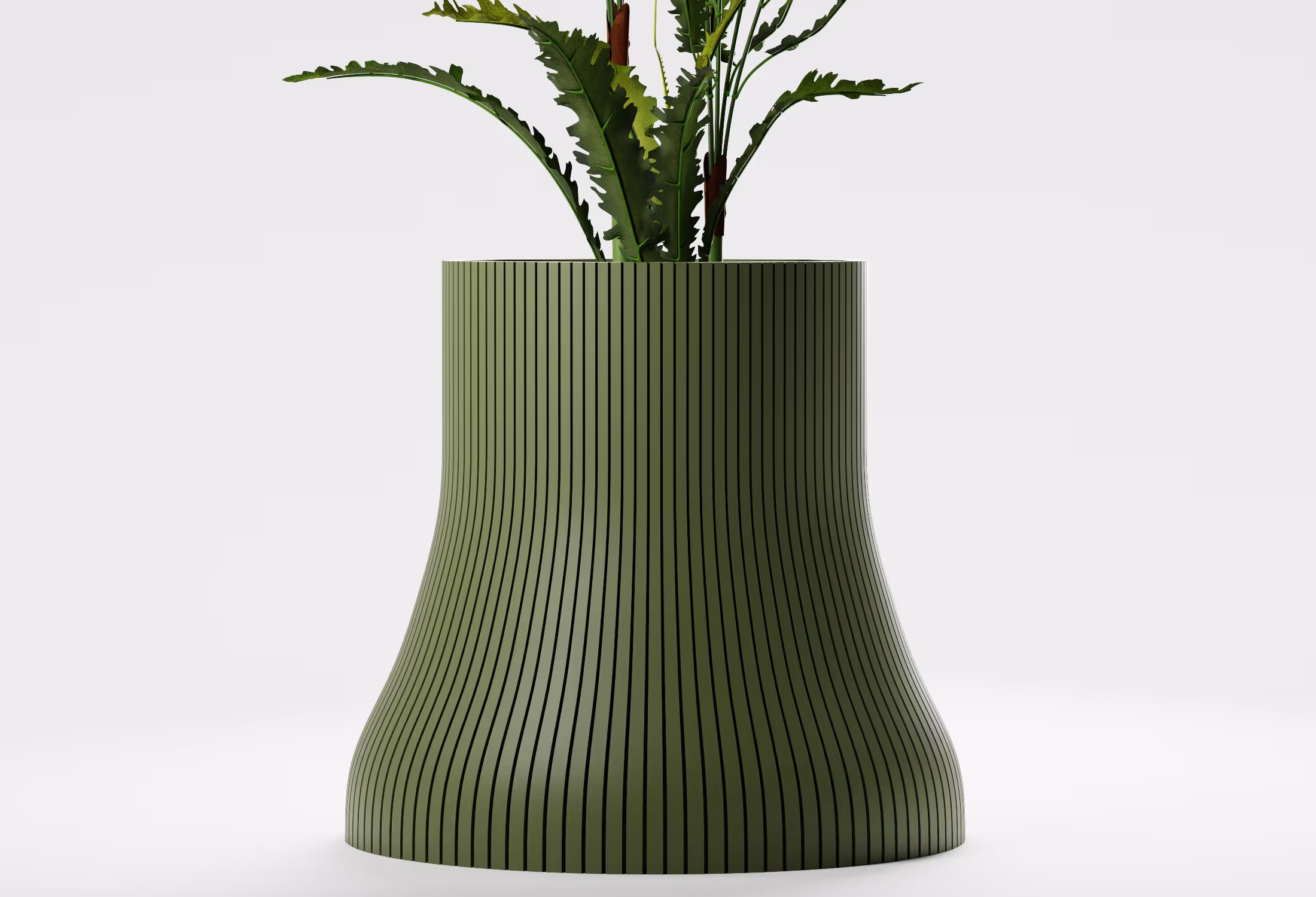 Reverie rises gently from a broad, grounded base into a tall, tapering form. Its silhouette feels calm and composed, making it well-suited to plants with upright structure or soft, arching foliage that mirrors its quiet vertical flow.